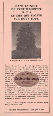 Ces " propos de René Magritte " sont illustrés d'une œuvre du même René Magritte, Le Seize Septembre, en noir et blanc.